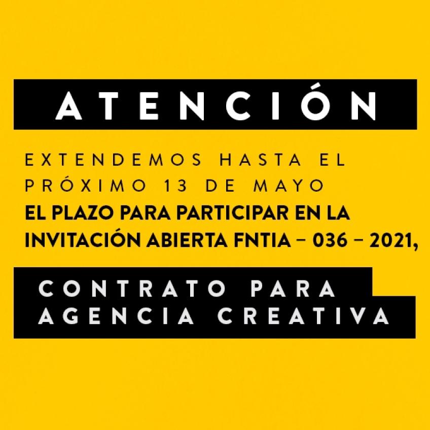 Bogotá, 5 de mayo de 2021. El Fondo Nacional del Turismo – Fontur extendió hasta el próximo jueves 13 de mayo, el plazo para que los oferentes interesados en participar en la invitación FNTIA – 036 – 2021 para la adjudicación de un contrato que tiene por objeto “Prestar servicios de planificación, creación, diseño, producción, ejecución de estrategias, campañas y herramientas de mercadeo y comunicaciones de los proyectos que apruebe, planee, financie y cofinancie el Fondo Nacional de Turismo Colombia, en cualquier formato que sugiere” presenten sus ofertas a la entidad.