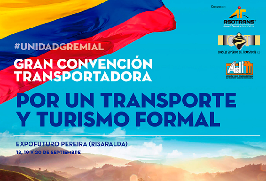 Pereira, 17 de septiembre de 2019, el Ministerio de Comercio, Industria y Turismo, a través del Fondo Nacional de Turismo, Fontur, apoya el Congreso de la Unidad Gremial 2019 ‘Por un Transporte y Turismo Formal’, organizado por La Asociación para el Desarrollo Integral del Transporte Terrestre Intermunicipal, ADITT, que se llevará a cabo del 18 al 20 de septiembre en el Centro de Convenciones y Exposiciones de Pereira, Expofuturo.